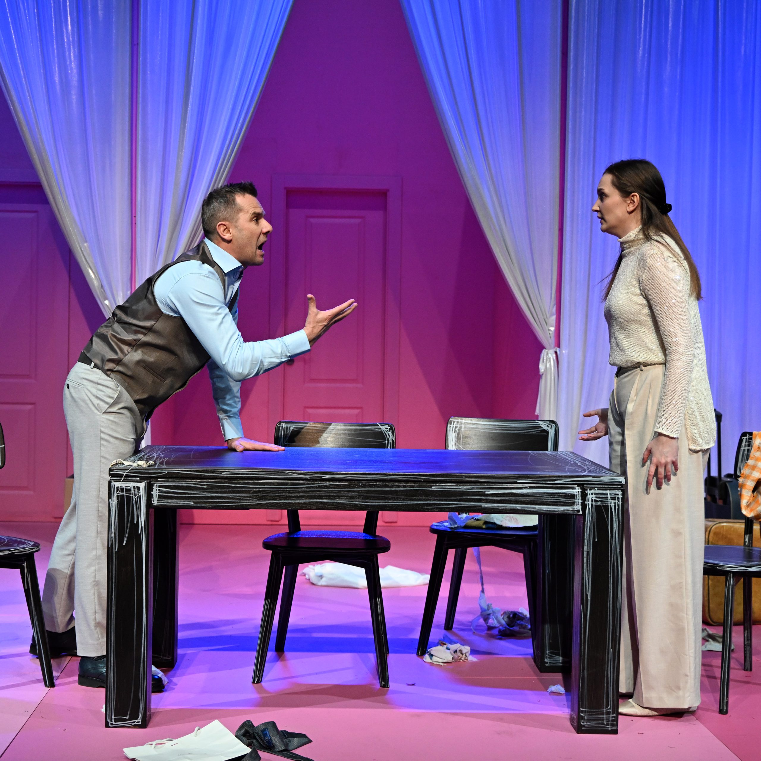 U predstavi igraju: Adna Kaknjo, Irfan Kasumović, Remira Osmanović, Nusmir Muharemović, Emir Sejfić, Mirza Ćatibušić, Zerina Mujkić i Nermin Hodžić. Scenografija predstave je bila povjerena Mirzi Čorbiću, a kostimografija Vesni Teodosić. Za muziku predstave je bio zadužen Igor Kasapović.