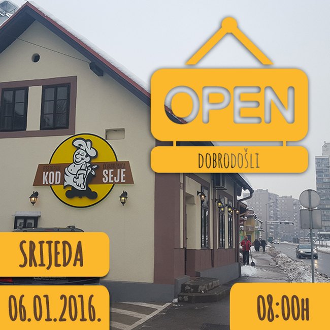 Nastalo iz tradicije… Lokacija – Sarajevska ulica, uz GGM (prostor ranije poznat kao Belami – obezbjeđen parking za goste objekta) – Radno vrijeme objekta od 8 do 22 sata. objekat na usluzi posjetiocima od srijede, 6. januara u 8 sati – dobrodošli –