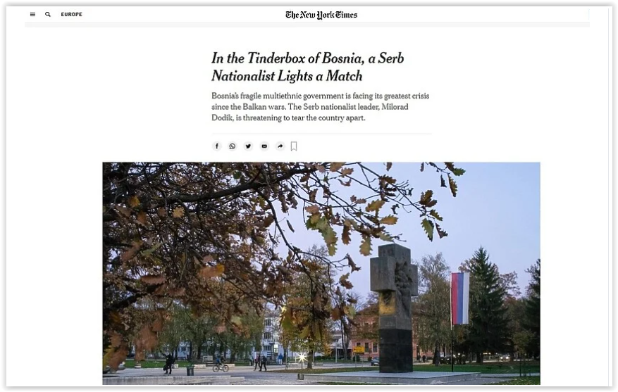 Retrospektiva 2021. godine u BiH iz ugla New York Timesa: Koji je Dodikov konačni plan?
