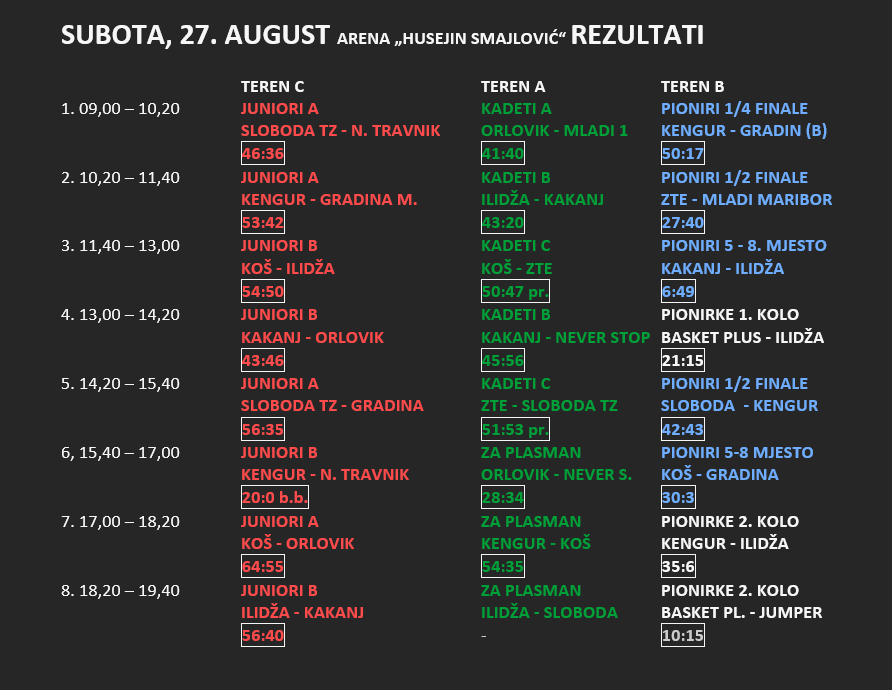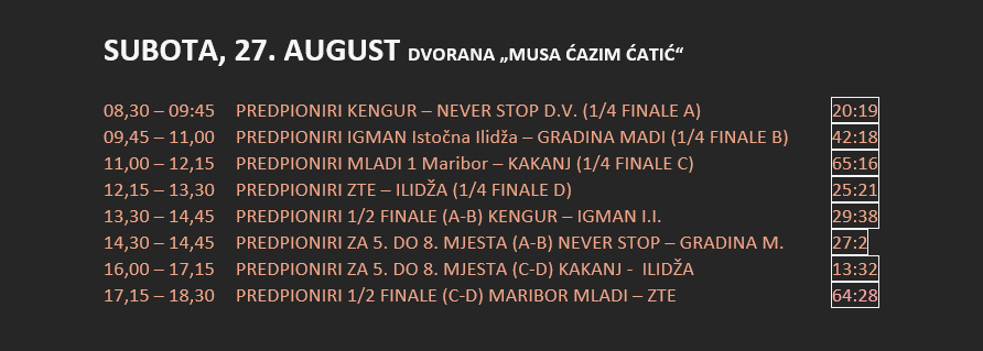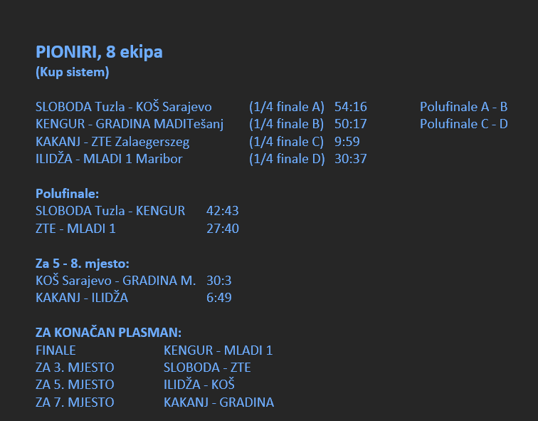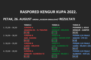 Rezultati prva dva dana KENGUR KUPA i raspored završnice turnira- U organizaciji KK Kengur Zenica u petak i subotu su igrane utakmice 24. izdanja Kengur kupa. Rezultati, kao i raspored završnice za nedjelju možete pogledati u prilogu: