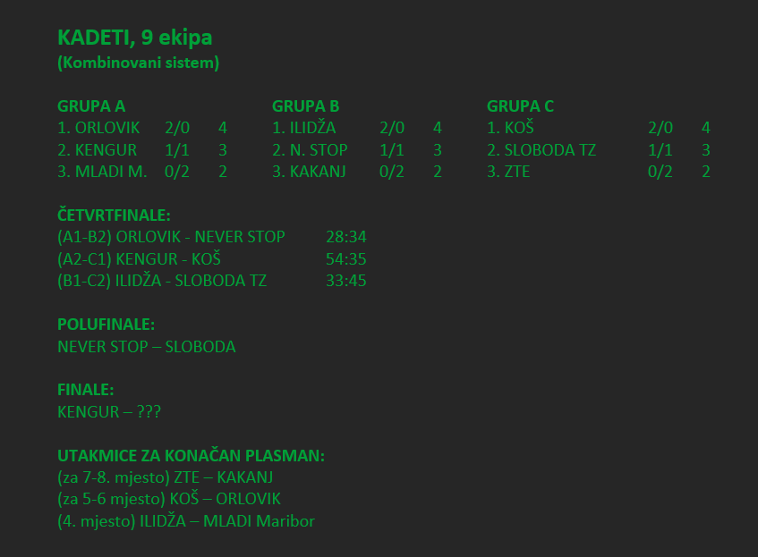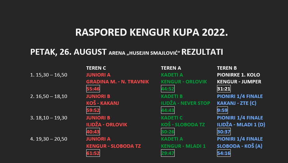 Kengur kup REZULTATI PRVA DVA DANA I RASPORED ZAVRSNICE