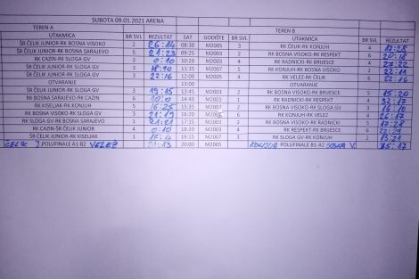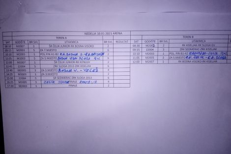 Rezultati prvog dana i raspored za nedjelju rukometnog turnira za dječake i djevojčice „Zenica 2021“ – U gradskoj Areni “Husejin Smajlović” u Zenici, prvog dana dvodnevnog tradicionalnog 11.rukometnog turnira prijateljstva, „Zenica 2021“, odigrano je 26 utakmica na dva terena, među kojima su i dvije polufinalne utakmice u kategoriji 2005.godište. U finale ove kategorije plasirali su se Čelik Junior i Konjuh.