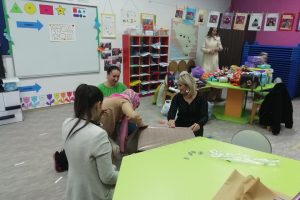 Kako bismo bili sigurni šta je to najviše neophodno djeci u JU “Dom porodica” Zenica, dogovorili smo sa koordinatoricom iz njihove ustanove da to podrazumijeva: pelene, humanu, voće, mlijeko, slatkiše i sl. Dana 22.11.2019. godine realizovana je radionica sa roditeljima iz svih timova naše ustanove. Sve kupljene potrepštine obogatili smo igračkama i odjećom. Predstavnici grupa zajedno sa koordinatoricom (Majda Berber), predsjednikom Vijeća roditelja (Adi Salčinović) i predstavnicima Uprave (Aldin Sinanović i Aida Mekić) posjetili su JU “Dom porodica” Zenica gdje su 25. novembra za Dan državnosti uručili poklone djeci.