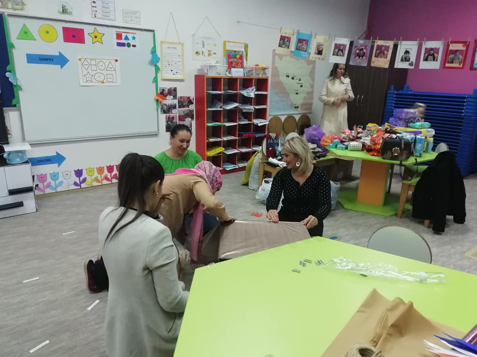 Kako bismo bili sigurni šta je to najviše neophodno djeci u JU “Dom porodica” Zenica, dogovorili smo sa koordinatoricom iz njihove ustanove da to podrazumijeva: pelene, humanu, voće, mlijeko, slatkiše i sl. Dana 22.11.2019. godine realizovana je radionica sa roditeljima iz svih timova naše ustanove. Sve kupljene potrepštine obogatili smo igračkama i odjećom. Predstavnici grupa zajedno sa koordinatoricom (Majda Berber), predsjednikom Vijeća roditelja (Adi Salčinović) i predstavnicima Uprave (Aldin Sinanović i Aida Mekić) posjetili su JU “Dom porodica” Zenica gdje su 25. novembra za Dan državnosti uručili poklone djeci.