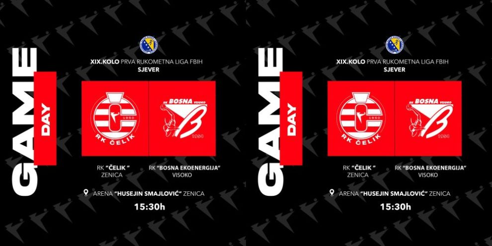 Danas će u Gradskoj areni “Husejin Smajlović” u Zenici biti odigrana utakmica 19. kola Prve lige FBiH-sjever između RK Čelik i RK Bosna Ekoenergija iz Visokog.
