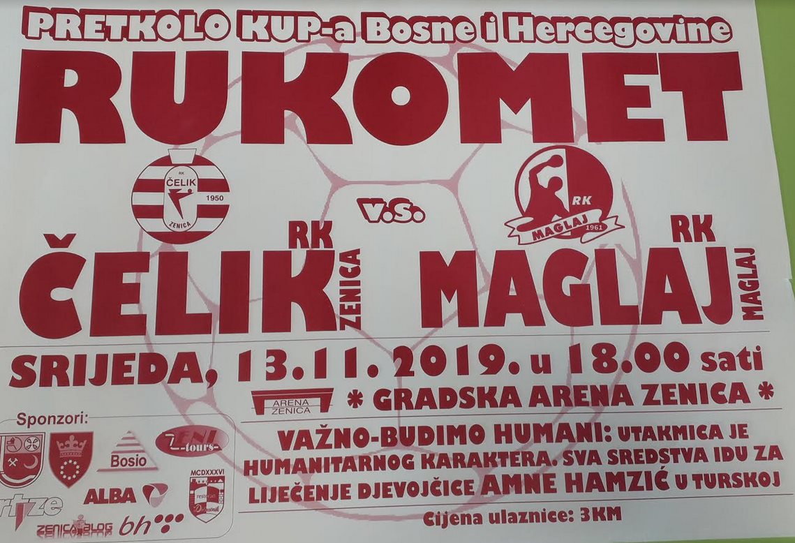 Kup utakmica pretkola sa RK Maglaj igra se u srijedu u 18 sati, takođe, u gradskoj Areni „Husejin Smajlović“ u Zenici, centralni teren, sa početkom u 18 sati. Ova Kup utakmica je i humanitarnog karaktera, jer će prihod sa ove utakmice ići u fond za liječenje djevojčice Amne Hamzić iz Zenice, koja treba da putuje na liječenje u Tursku, a potrebna sredstva za liječenje iznose 3.800 eura. Ulaz na ovu utakmicu je 3 KM.