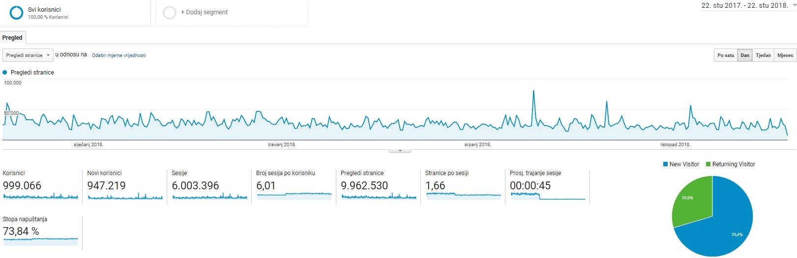 U posljednjoj godini, od 22.11. prošle godine do danas, bilo je to 9.962.530 posjete (registruje se jedna posjeta u 24h, a broj posjeta i posjetilaca – u ovoj godini 999.066 kontinuirano raste.