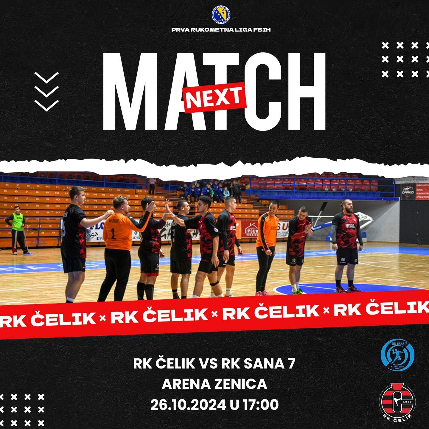 Mlada ekipa RK Čelik ove subote, 26.10.2024.godine, dočekuje ekipu RK „Sana 7“ iz Sanskog Mosta u okviru Prve rukometne lige FBiH, grupa Sjever.