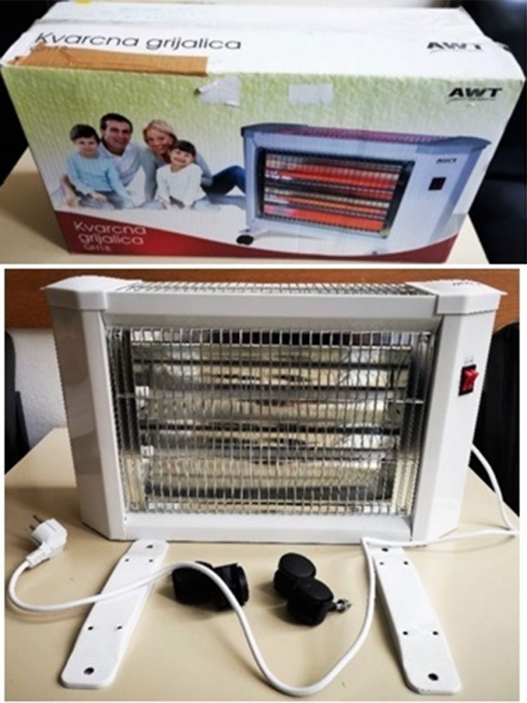 Opasnost od požara i opekotina predstavljaju i električne kvarcne grijalice porijeklom iz Kine – “AWT” tip QH18, bar kod 2307201320547 i AWT tip LX-2830S, bar kod 2105201828304 iz istih razloga kao i prethodne dvije grijalice.