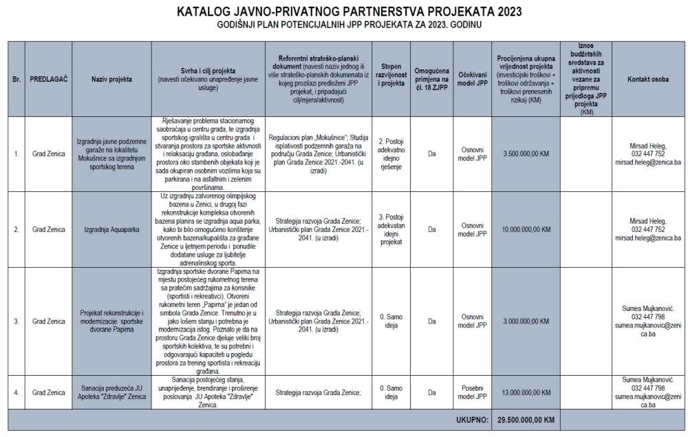Na stolovima vijećnika Gradskog vijeća na sjednici predviđenoj za četvrtak, iznenada, kao dopuna Dnevnog reda, naći će se usvajanje Kataloga projekata Javno-privatnog partnerstva u Gradu Zenica.