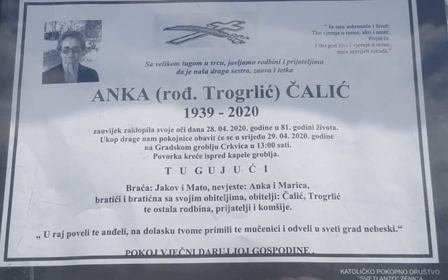 Danas je na zeničkom groblju Crkvice sahranjena Anka Čalić, majka Brune Čalić, dječaka koji je 1972. ubijen zbog krvne osvete. Cijelu priču možete pročitati na ovom linku. Nad njegovim ubicama izvršena je jedna od posljednjih smrtnih kazni u bivšoj državi.