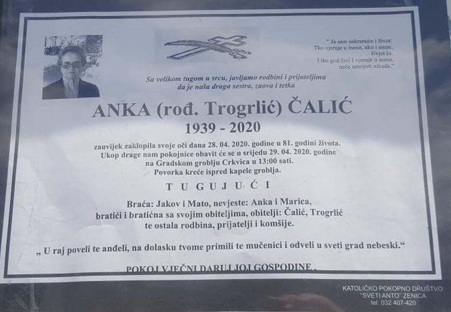 Danas je na zeničkom groblju Crkvice sahranjena Anka Čalić, majka Brune Čalić, dječaka koji je 1972. ubijen zbog krvne osvete. Cijelu priču možete pročitati na ovom linku. Nad njegovim ubicama izvršena je jedna od posljednjih smrtnih kazni u bivšoj državi.