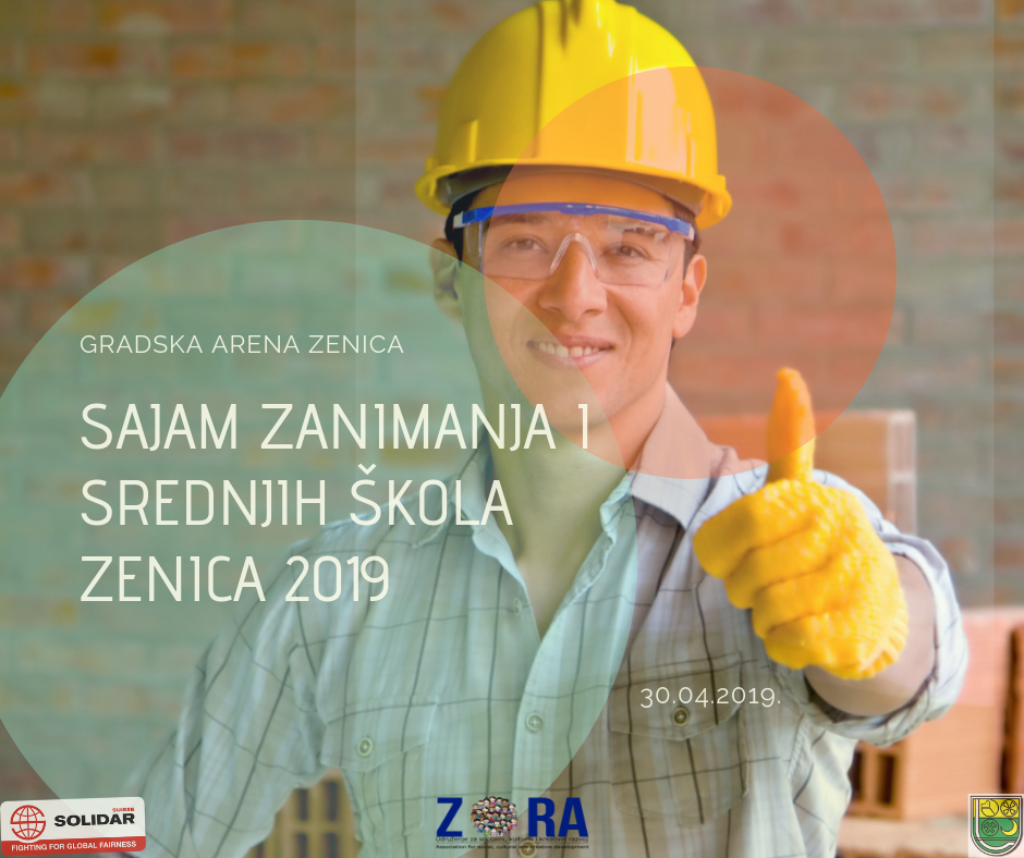 Sajam zanimanja i srednjih škola Zenica 2019. – Udruženje za socijalni, kulturni i kreativni razvoj Zora Zenica šestu godinu za redom, organizira Sajam zanimanja i srednjih škola u Zenici. Sajam zanimanja i srednjih škola je zamišljen tako da na jednom mjestu okupi sve srednje škole iz Zenice kako bi se zanimanja i škole mogle predstaviti učenicima završnih razreda osnovnih škole a sve u cilju boljeg karijernog savjetovanja i vođenja te odabira buduće srednje škole i zanimanja.
