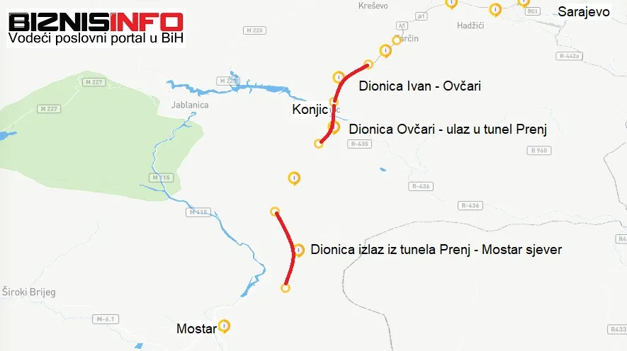 Riječ je o dionicama koje još nisu u fazi tenderisanja. Sve tri dionice se nalaze u Hercegovini. Prva je između Sarajeva i Konjica, tačnije od tunela Ivan do ulaza u Konjic.
