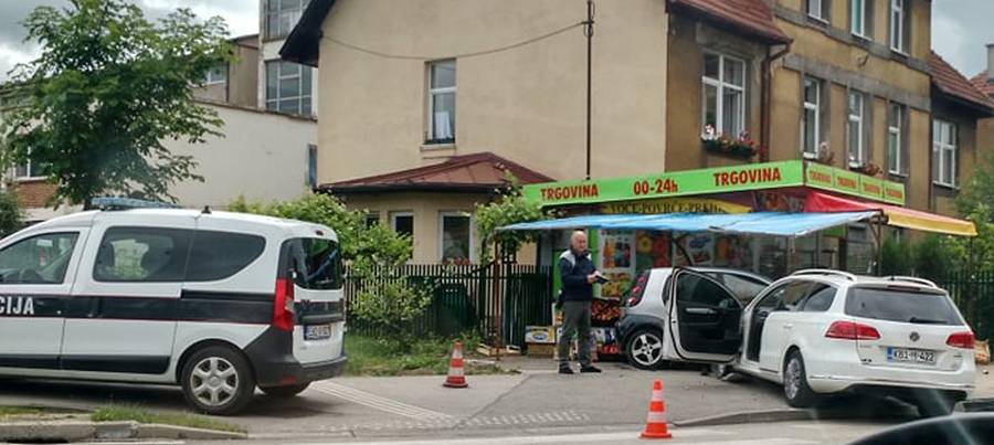 Automobil koji je izlazio sa GGM-a u ovu ulicu, je udario u drugi, parkirani automobil, a potom ga odgurao i zajedno su udarili u prodavnicu mješovite robe.