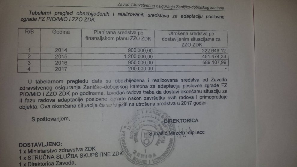 - Iznos planiranih i realiziranih sredstava za rekonstrukciju zgrade po godinama obezbjeđenja u mandatu 2012-2016 direktora Senaida Begica !