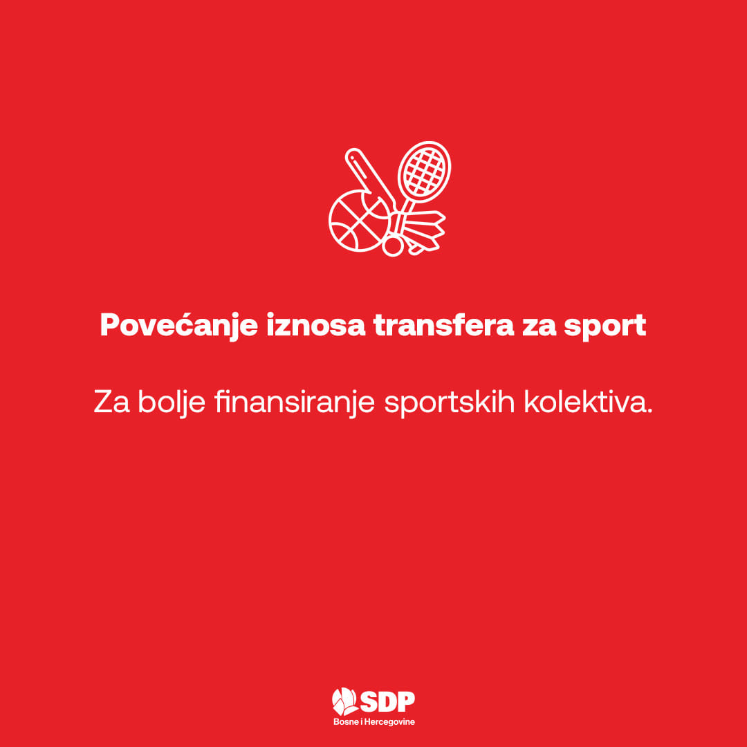 13. Povećanje iznosa transfera za sport – Za bolje finansiranje sportskih kolektiva.