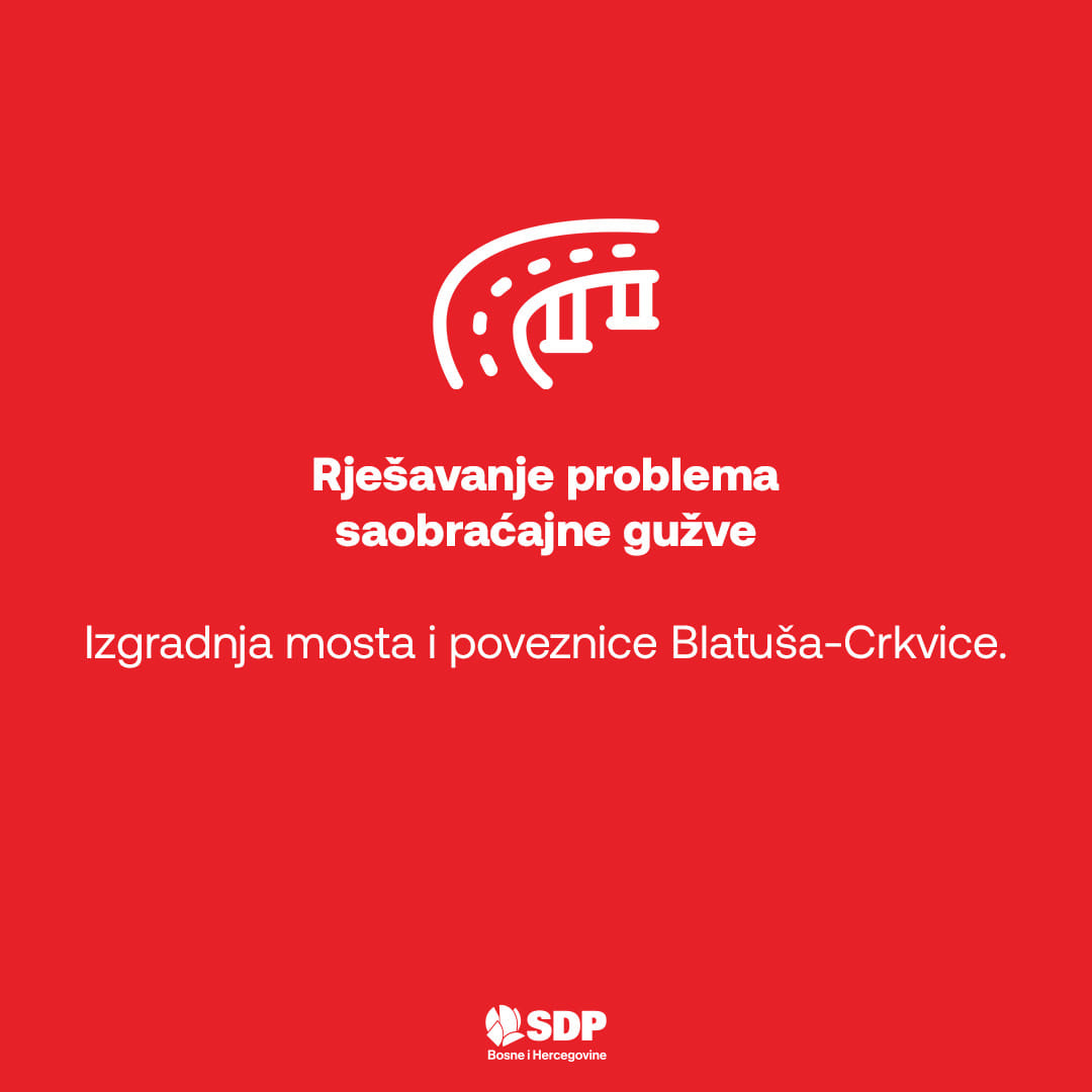 2. Rješavanje problema saobraćajne gužve – Izgradnja mosta i poveznice Blatuša-Crkvice.
