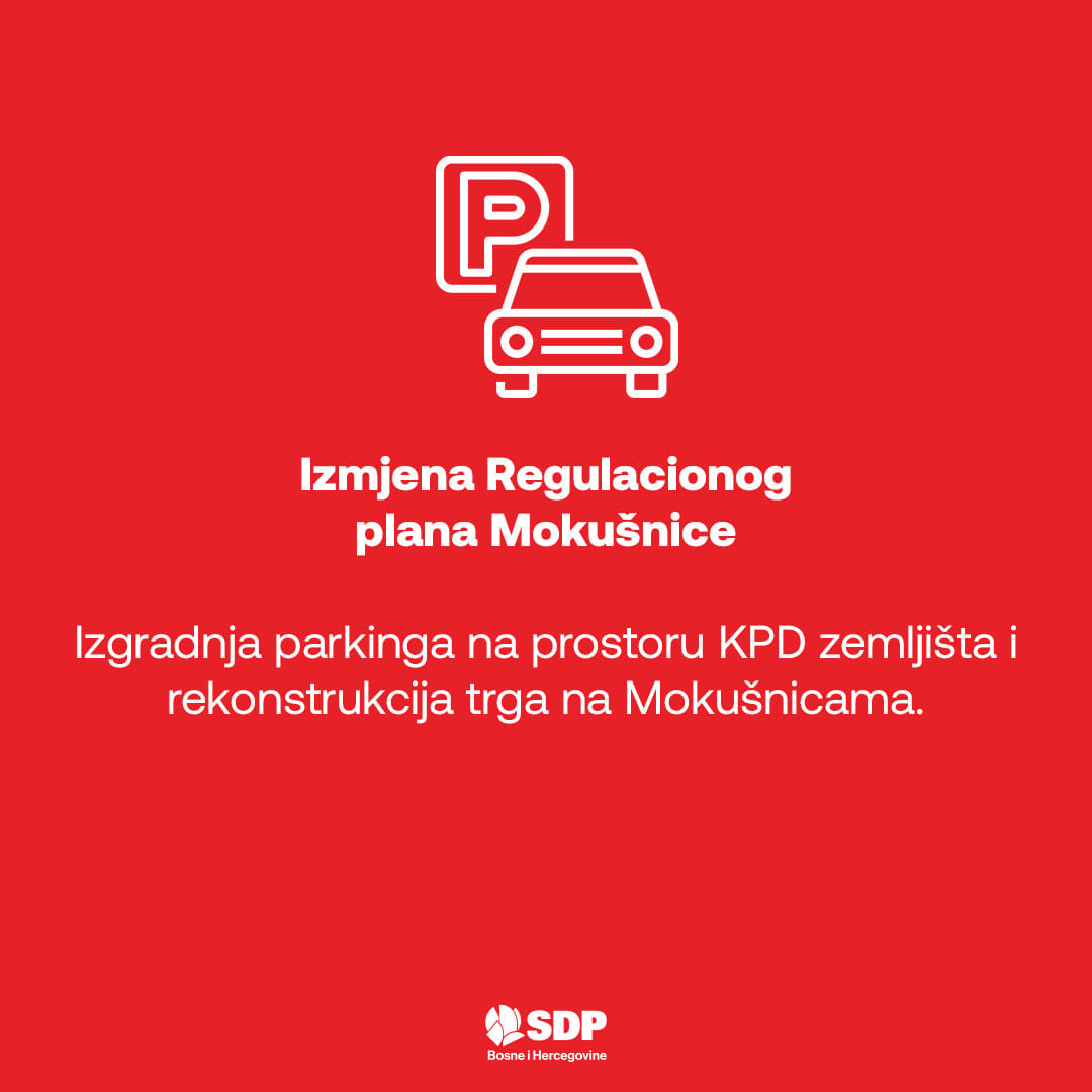 4. Izmjena Regulacionog plana Mokušnice – Izgradnja parkinga na prostoru KPD zemljišta i rekonstrukcija trga na Mokušnicama.