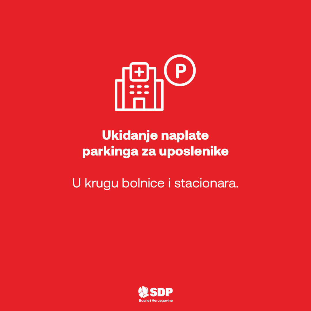10. Ukidanje naplate parkinga za uposlenike bolnice i stacionara – U krugu bolnice i stacionara.