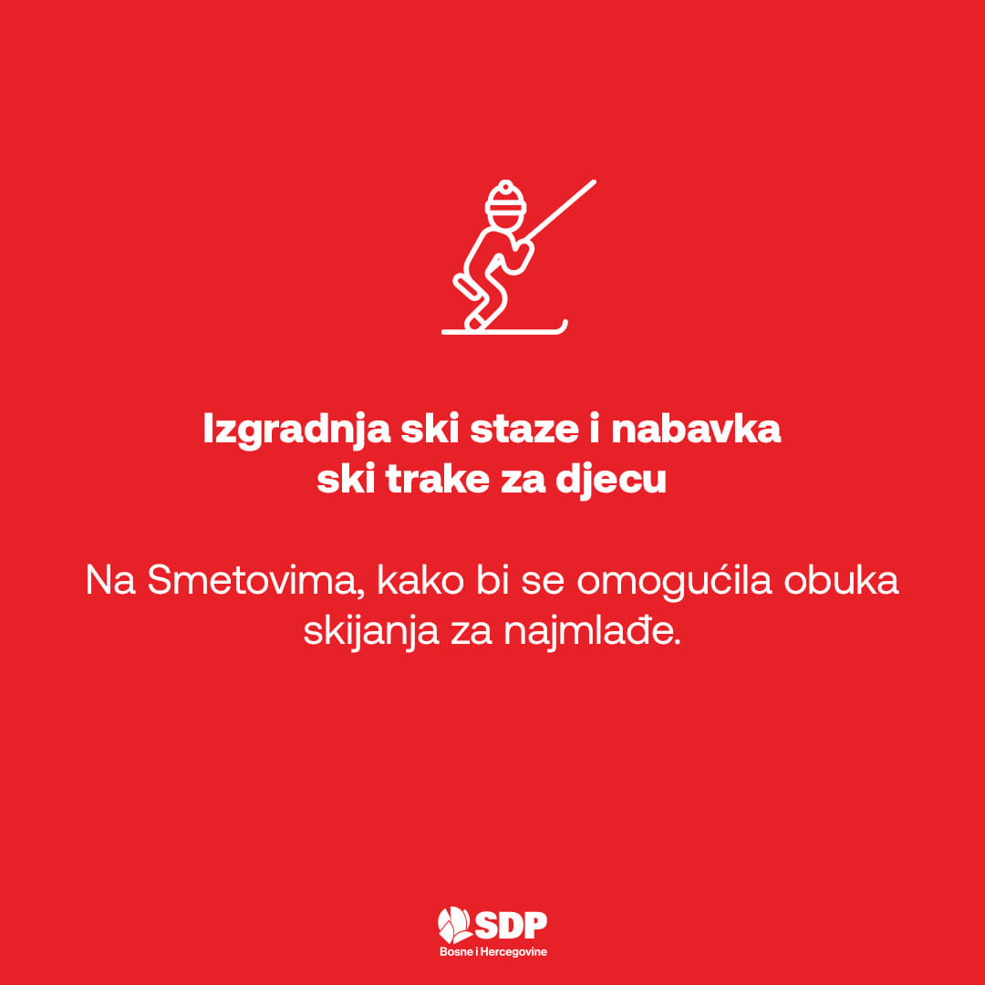 12. Izgradnja ski staze i nabavka ski trake za djecu – Na Smetovima, kako bi se omogućila obuka skijanja za najmlađe.