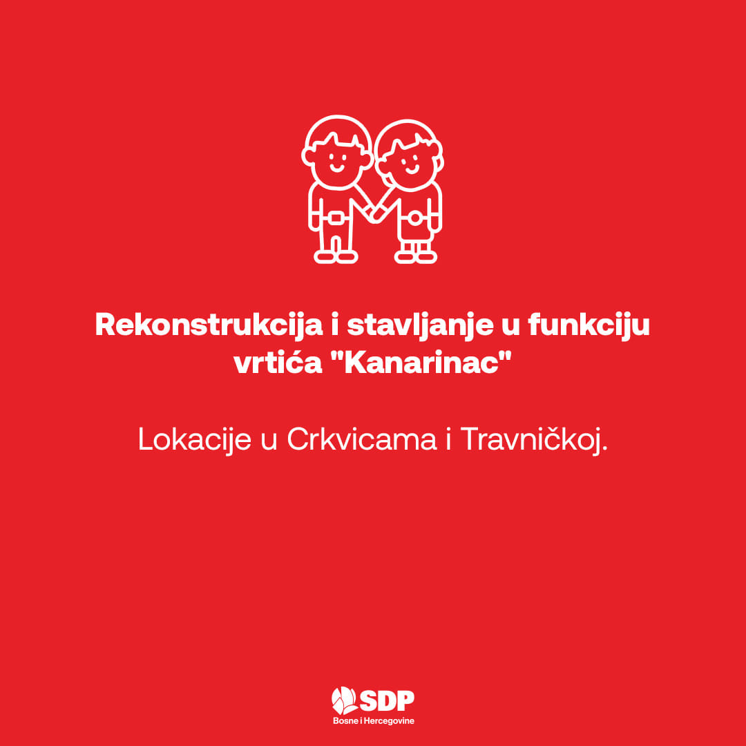 5. Rekonstrukcija i stavljanje u funkciju vrtića “Kanarinac” i vrtića u Travničkoj – Lokacije u Crkvicama i Travničkoj.