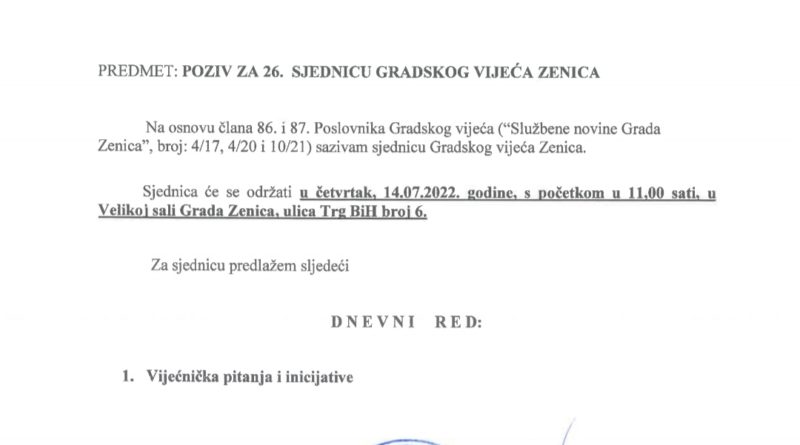 Aktuelna većina u Gradskom vijeću Zenica, koju čine ZI-KF, NiP i SDP, nastavlja s kršenjem normi i propisa koji reguliraju rad ovog predstavničkog tijela. Današnja 35. sjednica Vijeća zakazana je jučer suprotno Statutu Grada Zenica i Poslovniku o radu Gradskog vijeća, baš kao što je ranije aktuelna većina, suprotno propisima i demokratskoj praksi, onemogućila da se na dnevnom redu nađu vijećnička pitanja i inicijative.