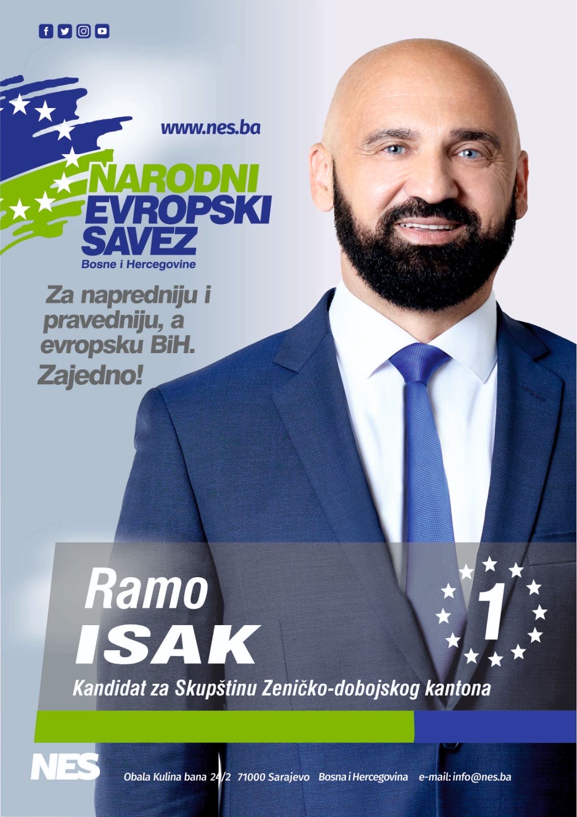 Svako onaj ko svoj glas dodijeli NES-u, ustvari je dao glas za budućnost i sebi i svojoj porodici, glas za novu infrastrukturnu putnu mrežu, za kružne tokove na ulazu u zenička naselja Lukovo Polje i Čajdraš, kao i u Olovu, za nove mostove, za završetak GGM-a u Zenici i za daljnje regionalno putno povezivanje općina i mjesnih zajednica u Zeničko-dobojskom kantonu, za razvoj kulture i za vraćanje sjaja ugašenih sportskih klubova koji su decenijama spajali generacije, i koji sada na marginama sporta u Bosni i Hercegovini svjedoče o pogubnosti  politike obezvrijeđenih političara, nošenih na glasovima iznuđenim na prljavom globalizacijskom smetljištu produkovanom ‘on-line’ nasiljem.