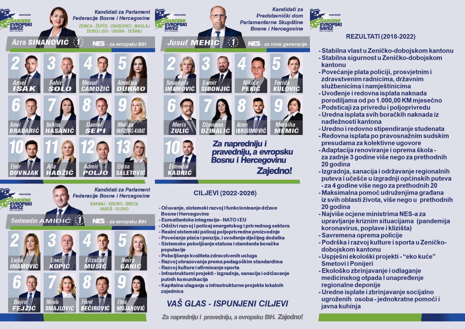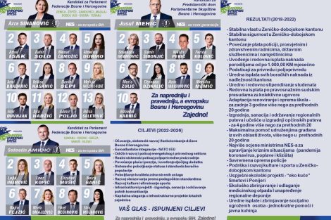 Da bismo se opredijelili za one koji sa sobom nose najveće vrijednosti, ali i šanse za sve građane kantona i naše države na civilizacijskom razmeđu Istoka i Zapada, sa svim izazovima i prijetnjama koje iz toga proističu, prisjetimo se samo nekih dostignuća koje je u protekle četiri godine mukotrpnog rada i djelovanja uspjela da postigne aktuelna vlast, predvođena Narodnim evropskim savezom (NES):
