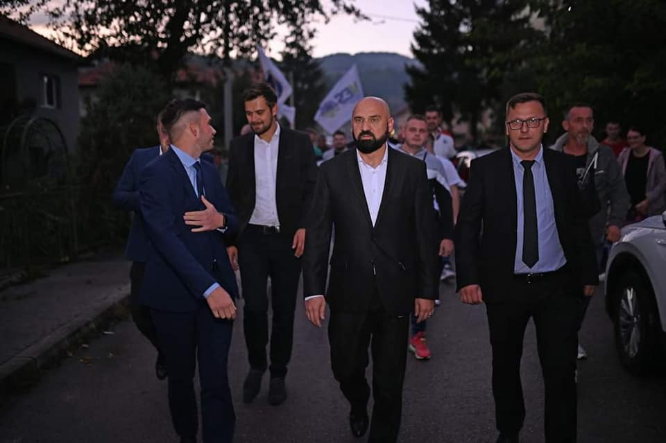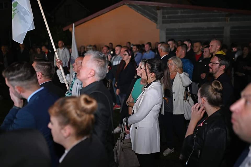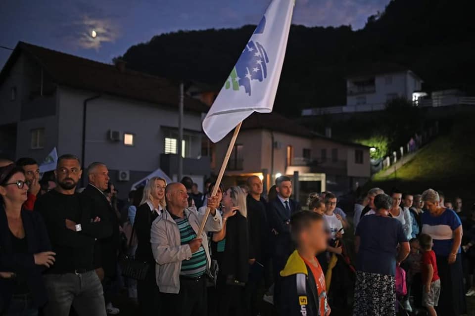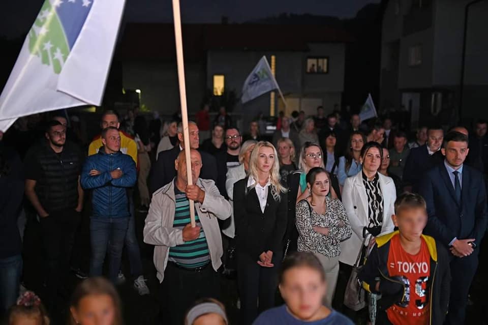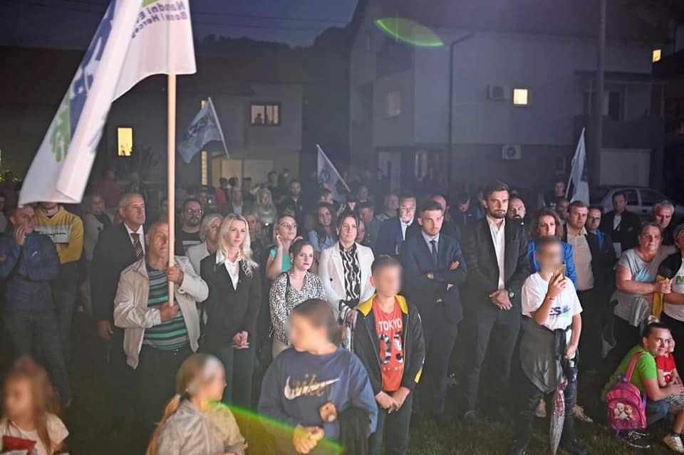 U sklopu večerašnjeg predizbornog skupa predstavljeni su i kandidati za nivoe vlasti, a prisutne je zabavljao estradni umjetnik Haris Šabanović.