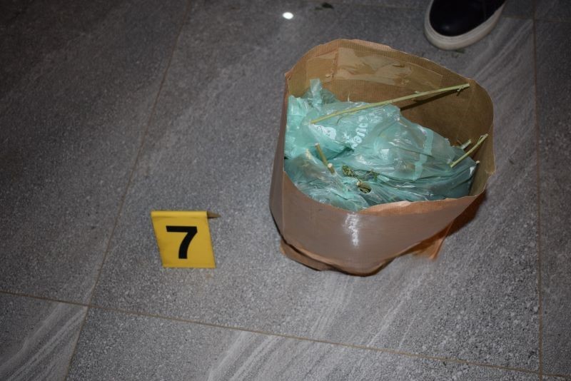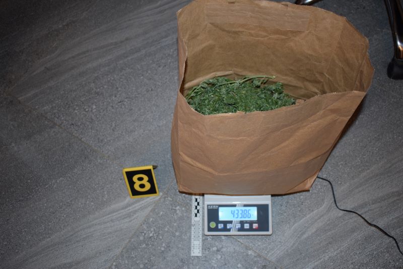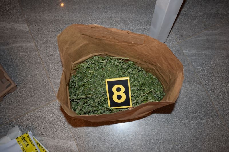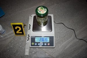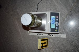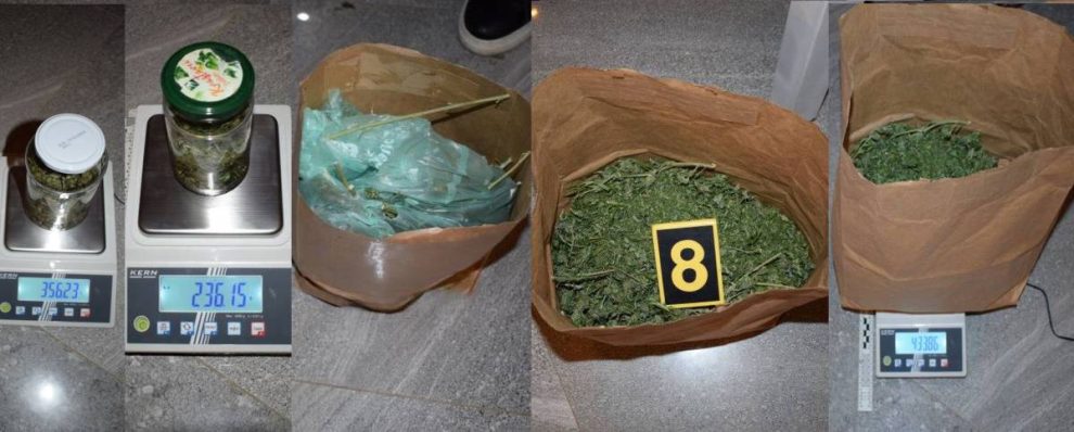 Prilikom pretresa pronađeno je pet staklenih tegli sa sadržajem biljne materije, koja svojim izgledom asocira na opojnu drogu “Marihuana”, ukupne težine 940,66 grama, dva upakovana sadržaja biljne materije, koja svojim izgledom asocira na opojnu drogu “Marihuana”, ukupne težine 720,90 grama, jedna nagorjela cigareta sa sadržajem biljne materije koja svojim izgledom asocira na opojnu drogu, ukupne težinu 0,75 grama i jedna digitalna vaga. Pronađeni predmeti su oduzeti, a lice lišeno slobode i zadržano u prostorijama za zadržavanje, nakon čega je nad istim zavedena kriminalistička obrada, te je ispitan u svojstvu osumnjičenog.