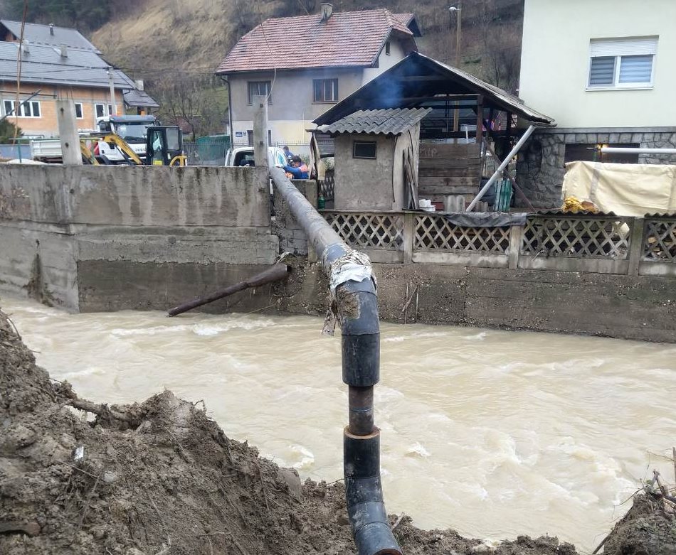 Na lokalitetu Vardišta, gdje je nabujala rijeka Kočeva u nedjelju 03.02.2019. godine prekinula glavnu vodovodnu liniju za naselja Vardište i Broda, tehničku pomoć u izgradnji novog cjevovoda iznad riječnog korita, pružile su stručne ekipe JP „Grijanje“ Zenica.