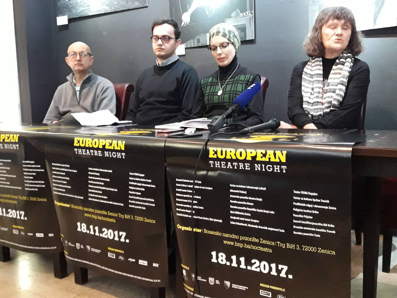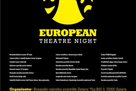 Sarajevo i 12 gradova širom BiH u subotu održava Evropsku manifestaciju Noć teatra – U susret 8. manifestaciji Noć teatra za BiH, koja se održava u subotu 18. novembra, danas je održana konferencija za medije u Sarajevskom ratnom teatru SARTR. Na konferenciji za medije su govorili: dramaturginja Sarajevskog ratnog teatra Dubravka Zrnčić-Kulenović, direktor Centra kulture i mladih Općine Centar Sarajevo Senad Bostandžić, izvršni producent Noći teatra za BiH Denis Krdžalić i koordinatorica Noći teatra za BiH Merima Handanović.