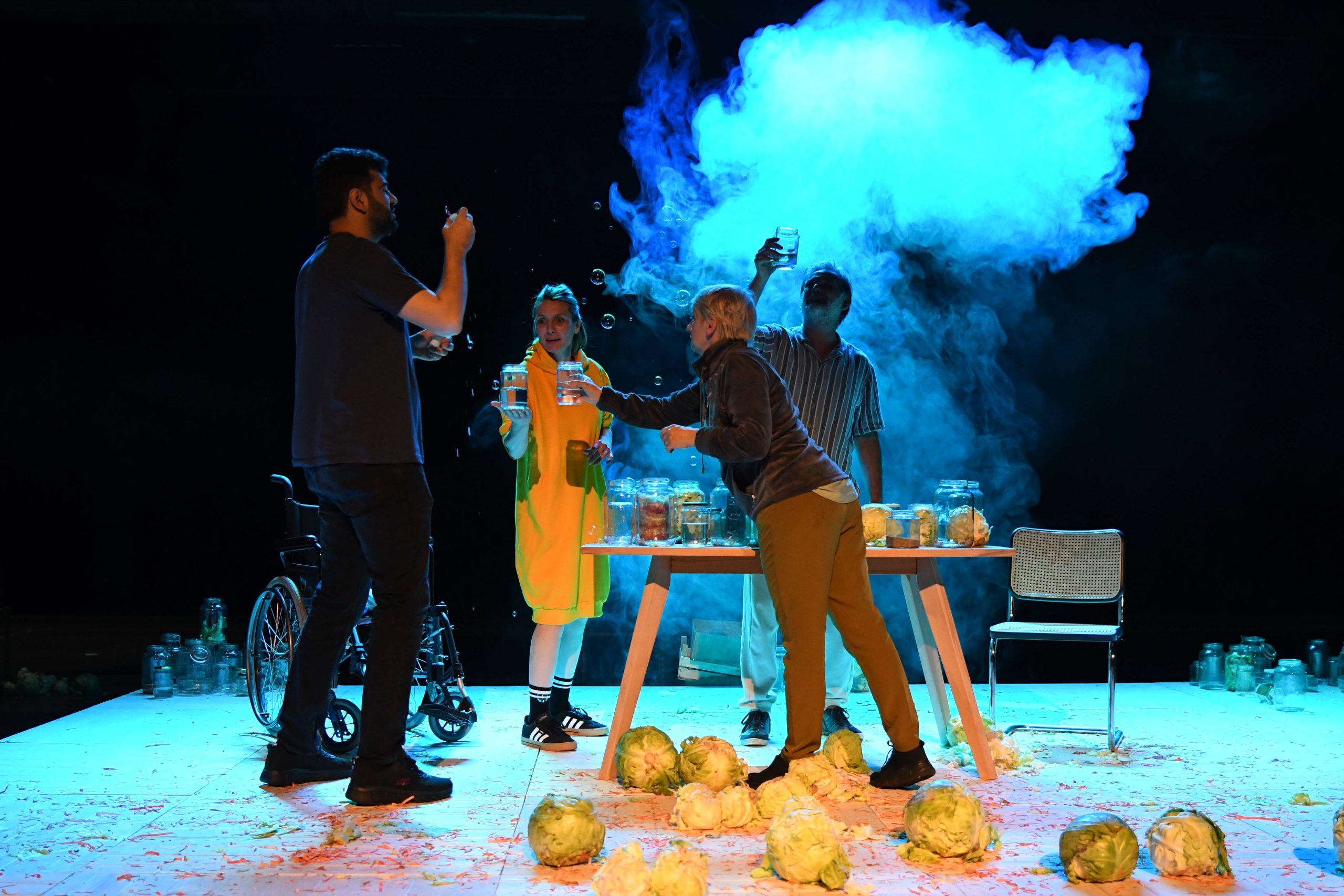 U predstavi igraju: Gordana Boban, Mirvad Kurić, Selma Mehanović i Benjamin Bajramović. Dramaturginja predstave je Asja Krsmanović. Scenografija predstave je bila povjerena Sabini Trnki, a kostimografija Irmi Saje, dok je za muziku bio zadužen Enes Zlatar.