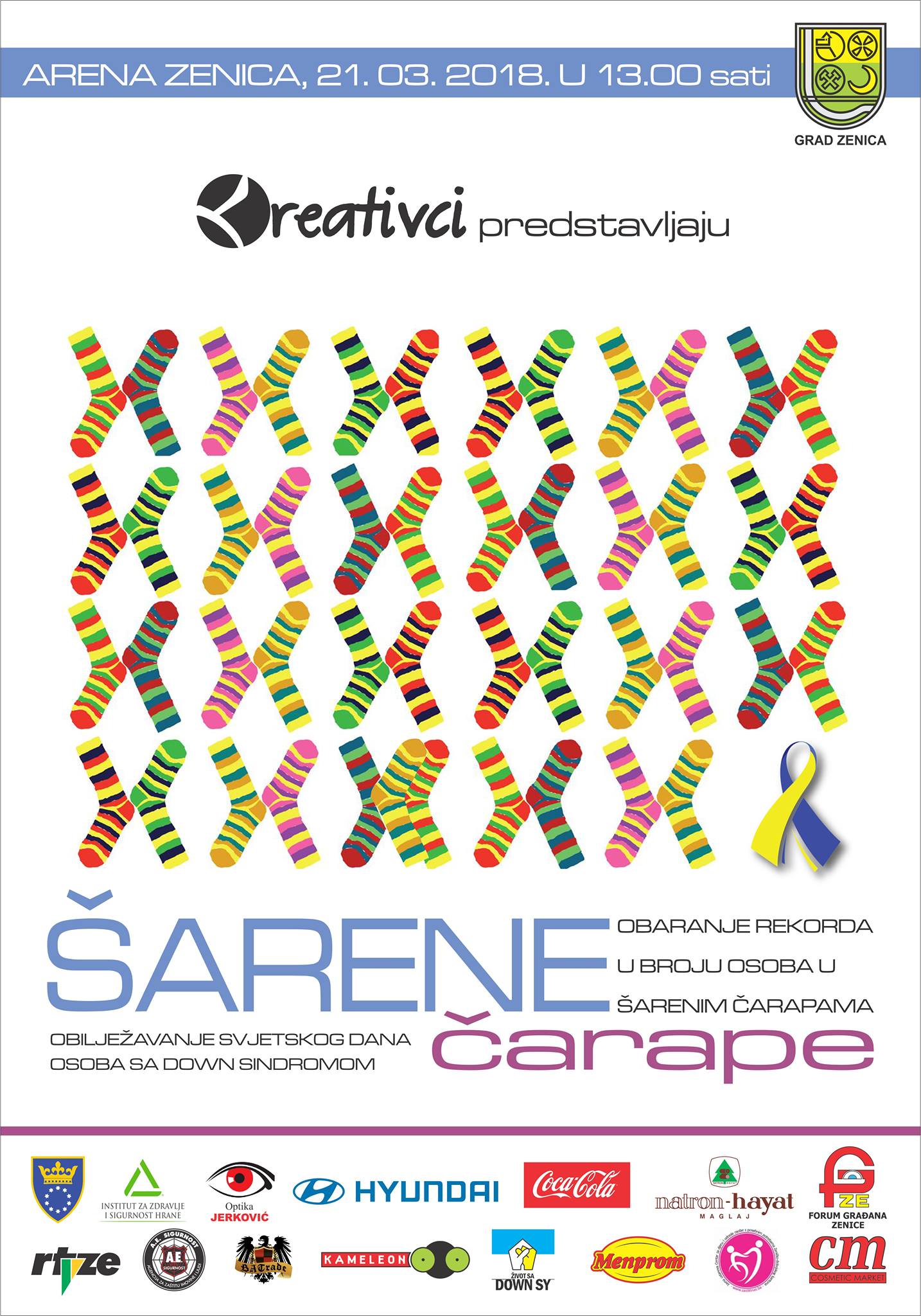 Manifestacija „Šarene čarape“ će se održati u Gradskoj areni Zenica, na Međunarodni dan osoba sa Down sindromom, u srijedu 21.03.2018. godine sa početkom u 13:00 h.