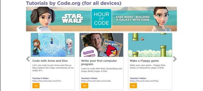 Kako bi se privukao što veći broj učesnika širom svijeta, i kako bi programiranje dobilo veću važnost u obrazovanju, i ove godine, kreirana su novi tutorijali u saradnji sa Disneyjem i Microsoftom. Organizacija Code.org u saradnjii sa Disneyjem napravila je novi tutorijal u kojem princeza Leia i ostali likovi iz Ratova zvijezda uče učenike kako da kreiraju svoju vlastitu igru (https://code.org/starwars). Ovaj tutorijal nije namijenjen samo učenicima, već i profesorima, kao i profesionalnim programerima.