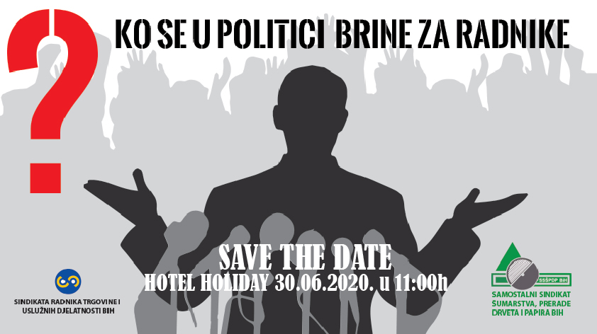 SAVE THE DATE: Ko se u politici bori za radnike? – Sindikat radnika trgovine i uslužnih djelatnosti BiH u saradnji sa Samostalnim sindikatom šumarstva, prerade drveta i papira BiH organizira event pod nazivom “Ko se u politici brine za radnike”, na koji će pozvati predstavnike svih političkih stranaka u Bosni i Hercegovini, predstavnike nevladinih i međunarodnih organizacija, ambasada, te ekonomske analitičare i predstavnike medija. Ovim događajem navedeni sindikati žele istaći potrebu da se izvršna i zakonodavna vlast u zemlji daleko progresivnije uključe u borbu za zaštitu prava radnika i unaprjeđenje uvjeta rada na radnim mjestima.