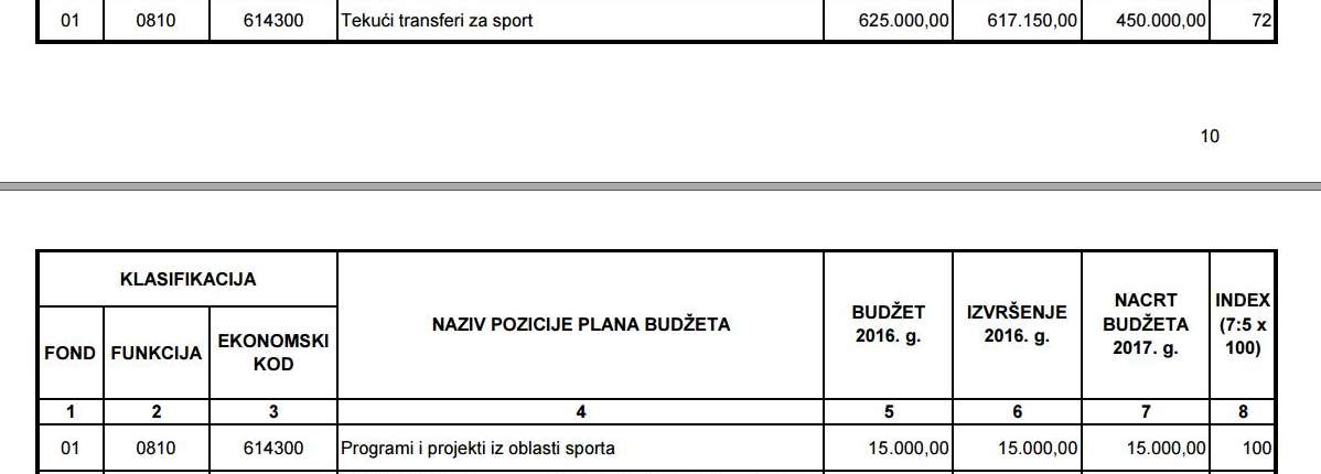 U četvrtak je na sjednici gradskog vijeća i Nacrt budžeta Grada Zenica za 2017. Zanimljivo je da je predlagač, gradonačelnikov tim, predvidio značajno milionsko uvećanje u prihodima računajući na veće uplate komunalnih taksi. Međutim, transferi za sport nisu uvećani ove godine, iako je najavljeno da će novac od “oporezivanja” kladionica biti namijenjen za razvoj sporta. Umjesto toga, budžet za sport je smanjen čak za 175.000 KM, što pokazuje i izvod iz Nacrta, kojeg objavljujemo.