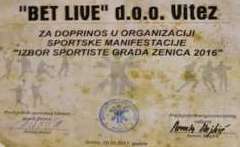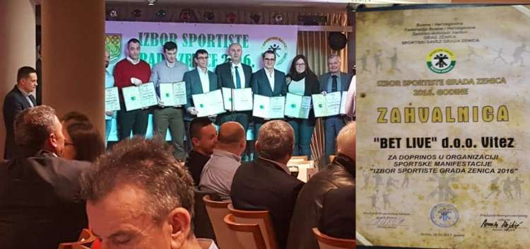 Savjetnik Gradonačelnika dodjelio nagradu za pomoć sportu kladionici – i pored povećanja taksi, sportu manje novca u 2017. – Sportske kladionice ‘Bet Live’ jedan su od laureata u dodjeli tokom Izbora sportiste grada Zenica, tradicionalnoj manifestaciji u našem gradu. Nagrada je dodjeljena u kategoriji Društveno odgovornih kompanija, odnosno onih koji su pomogli zenički sport i sportiste kao i ovu manifestaciju kojom je podvučena linija za sportsku 2016. godinu.