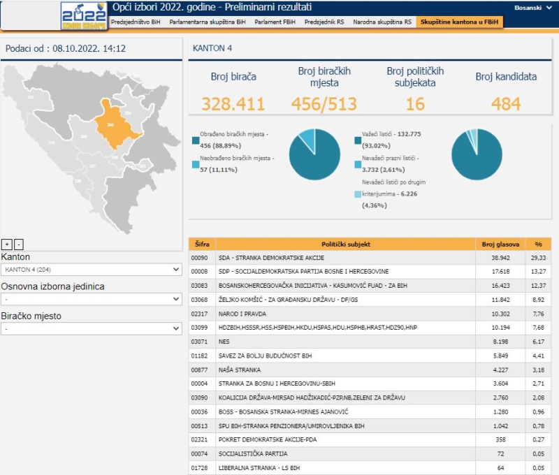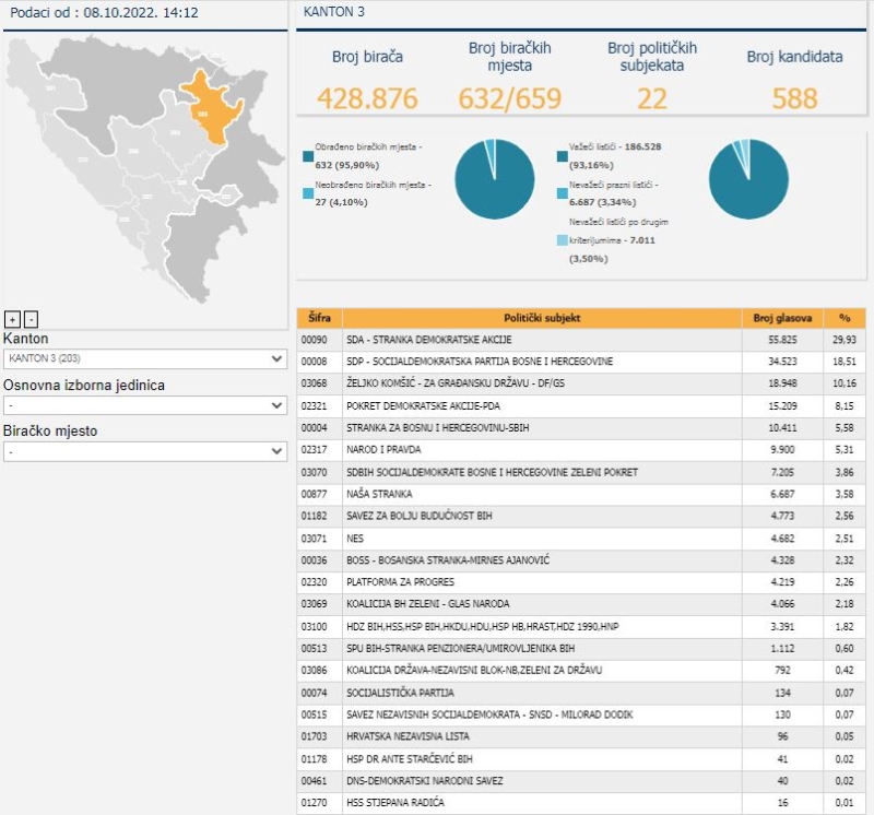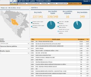 Kada su u pitanju kantoni, obrađeno je 93,93 posto biračkih mjesta.