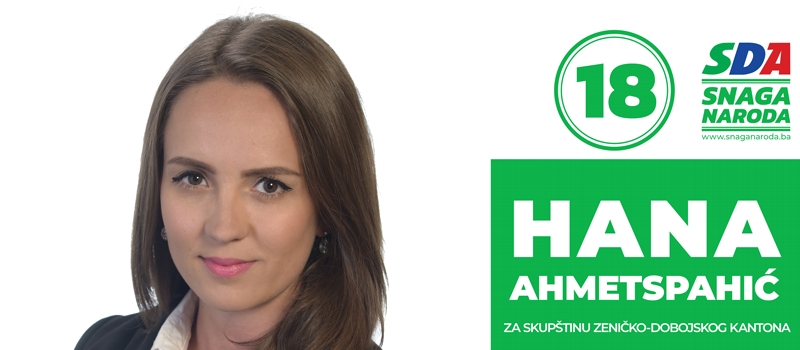 SDA – Predstavljanje biografija kandidata – Hana Ahmetspahić – Rođena je 02. avgusta 1988. godine u Zenici, gdje završava osnovnu školu i Opću gimnaziju. U junu 2011. godine završava Pravni fakultet Univerziteta u Zenici i stiče zvanje diplomirani pravnik. Na Pravnom fakultetu u Zenici u martu 2016. godine, uspješno je odbranila magistarski rad na katedri za historiju države i prava te stekla akademsko zvanje magistar prava.