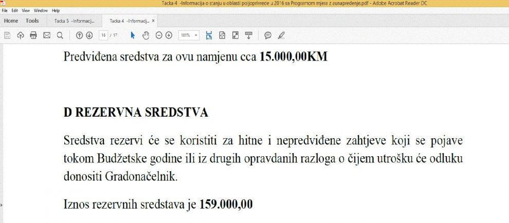 Ovaj put je plasirao smutnju kako 800 poljoprivrednika čeka na isplate poticaja za poljoprivredu zbog Gradskog vijeća. Iako javnost zna da to nije tačno, ovdje želimo iznijeti neoborive dokaze o odgovornosti njega i njegovih novouspostavljenih nesposobnih službi. Na osmu sjednicu Gradskog vijeća koja je održana 25. maja 2017. godine dostavljena je “Informacija o stanju poljoprivrede u 2016. Godini“ sa “Programom za unapređenje poljoprivrede u 2017. Godini“ na području Grada.