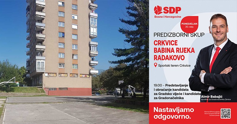 Gradska organizacija SDP BiH Zenica poziva sve građane naselja Crkvice, Babina Rijeka i Radakovo na predizborni skup koji će se održati u ponedjeljak, 30. septembra 2024. godine, s početkom u 19:00 sati, na Sportskom terenu u Crkvicama.