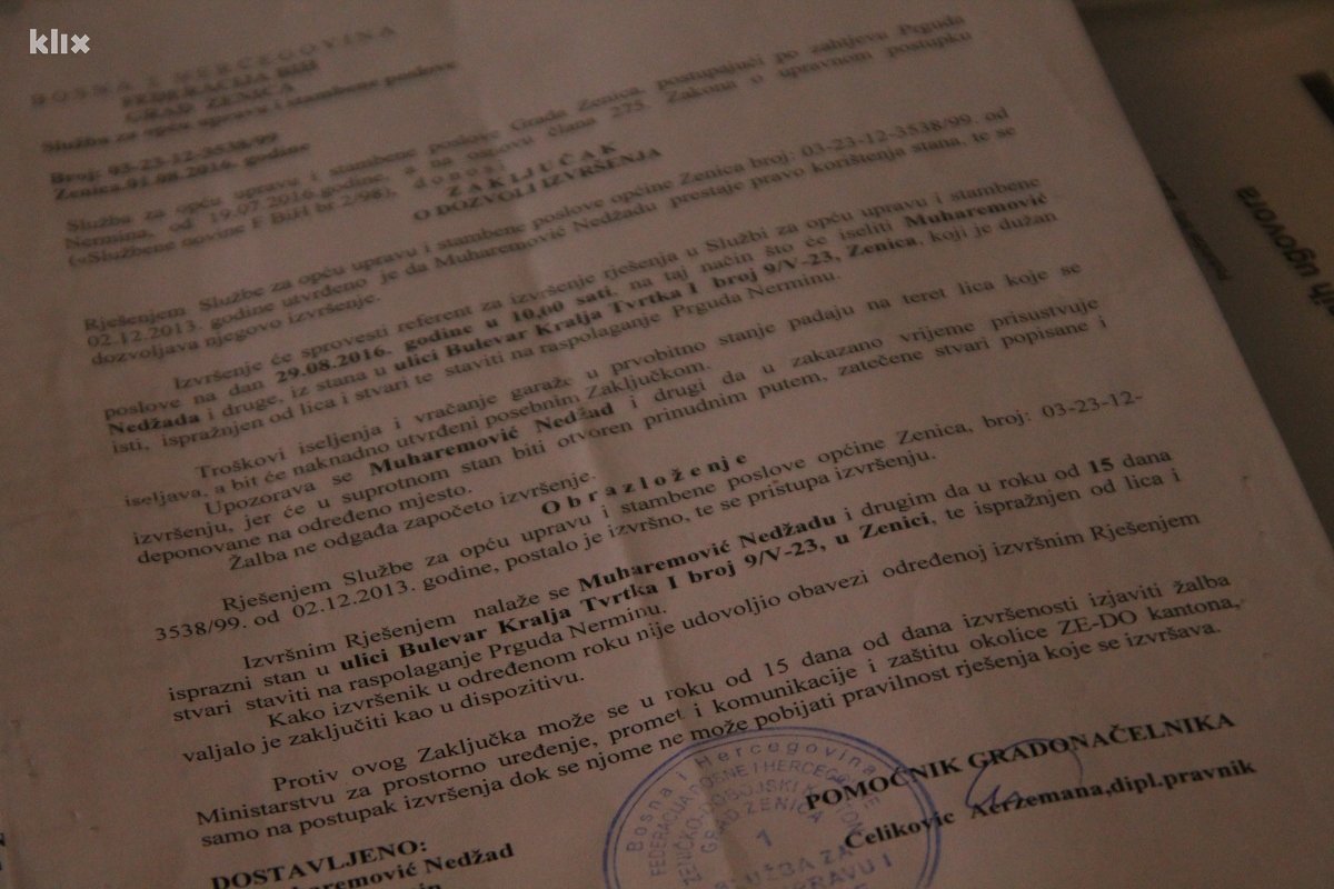 Služba za opću upravu i stambene poslove općine Zenica je ustanovila da Nedžadu Muharemoviću od 2. decembra 2013. godine prestaje pravo na korištenje stana zbog čega mu je za 29. august najavljena deložacija. U razgovoru za Klix.ba Muharemović je kazao da ne zna iz kojih razloga je donesena ova odluka.
