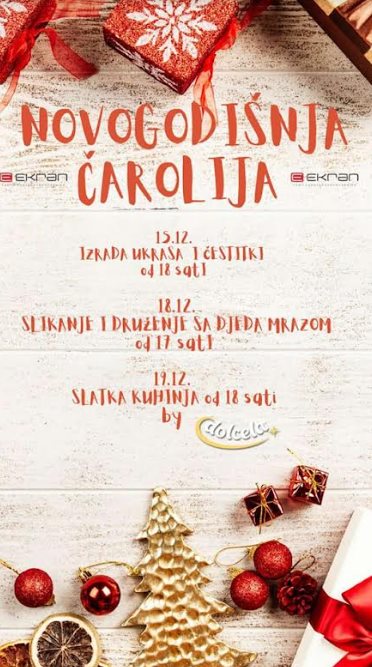 Sutradan, 19.12. ponovo pravimo novogodišnje kolače by Dolcela. Dođite i zajedno sa Bakom Mraz napravite i ukrasite najukusnije muffine, ali ostavite i poneki za djedicu jer on nam opet dolazi 24.12. sa prijateljem snješkom bijelićem SNOLETOM na novogodišnju zabavu.