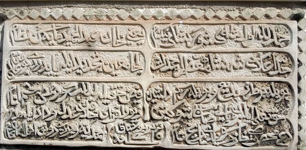 “NEKA JE HVALA VELIKOM OSVAJAČU ABDULHAMIT-HANU – SLAVAN NEKA JE – ČIJOM PODRŠKOM JE OBNOVLJENA DŽAMIJA VELIKOG ŠEHINŠAH AHMEDA.