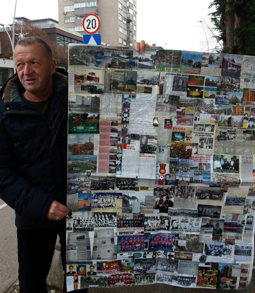 -Evo ovo je Čelik i moj Grad Zenica. Na panou mnogo Zeničana, najviše Čelikovih igrača, političara iz prošlog vremena koji su dali nešto Zenici, ulica, stadiona. Prisutni pođoše nabrajat najbolji sastav Čelika po njima.