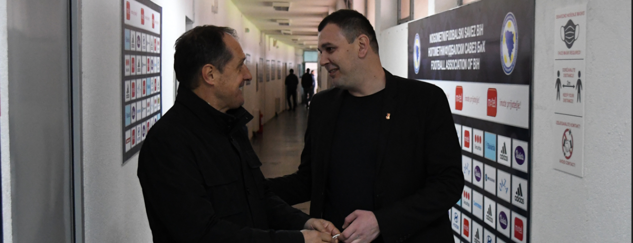Tema današnjeg razgovora je trenutno stanje u Čeliku i planovi za budućnost, te na kraju zajedno s predstavnicima preduzeća Alba d.o.o., koje radi na održavanju travnjaka, posjetio se teren stadiona Bilino polje.