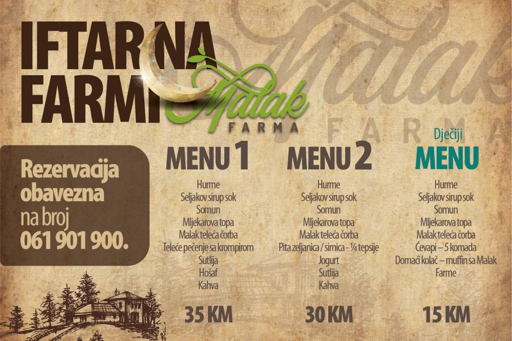 Seljak, Mljekar i Mesar Vas pozivaju da dođete na iftar na Malak Farmu