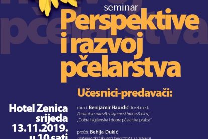 Seminar o pčelarstvu u Zenici i online priručnik o dobrim pčelarskim praksama – Institut za zdravlje i sigurnost hrane Zenica (INZ) organizira naredne sedmice, uokviru projekta “Razvoj pčelarstva”, seminar “Perspektive i razvoj pčelarstva”. Skup je podržalo kantonalno Ministarstvo za poljoprivredu, šumarstvo i vodoprivredu Zeničko-dobojskog kantona, a na jednom mjestu će okupiti pčelare, proizvođače, predstavnike udruženja, ali i stručnjake koji brinu o zdravlju pčela, kvalitetu njihovih proizvoda, te zdravlju ljudi.